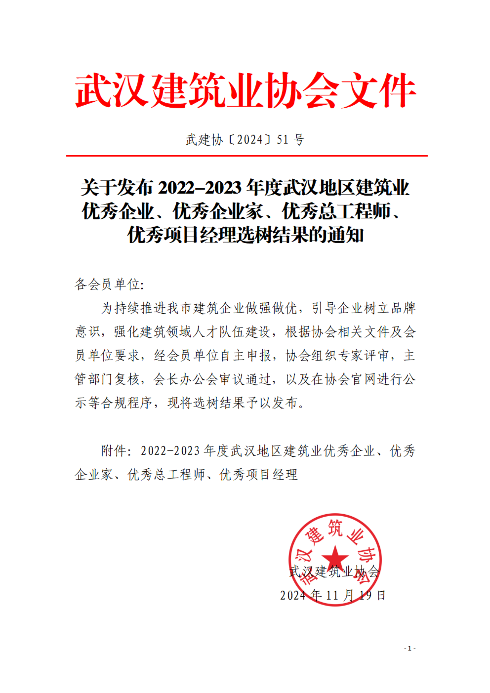 - 2024-11-22湖北省建工第五建設有限公司榮膺2023年度武漢市最具成長性民營建筑企業(yè)...[圖]